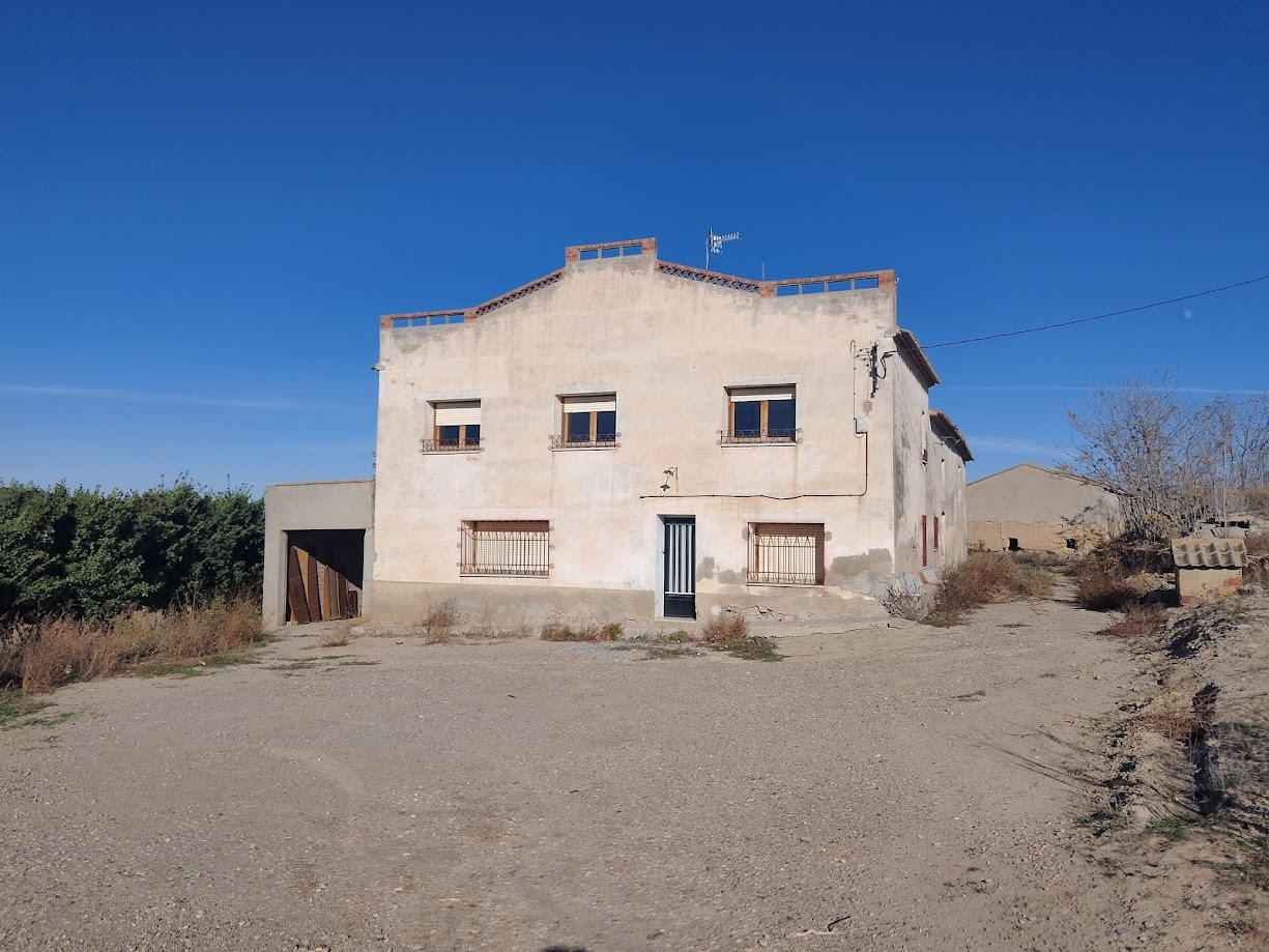 Finca rústica de 3.600 m2 con casa a tres fachadas de 152m2 con mucha luz natural, para acondicionar por dentro. El inmueble se compone de otras tres edificaciones de anejos agrícolas en diferente estado de conservación que suman un superficie construida de 483 m2. Se ubica entre Huesca y Lleida, en un un paraje de terreno muy llano con unas vistas impresionantes a 6 Km. de Altorricón y 9 km de Almacellas, por camino asfaltado y con muy buen acceso rodado.