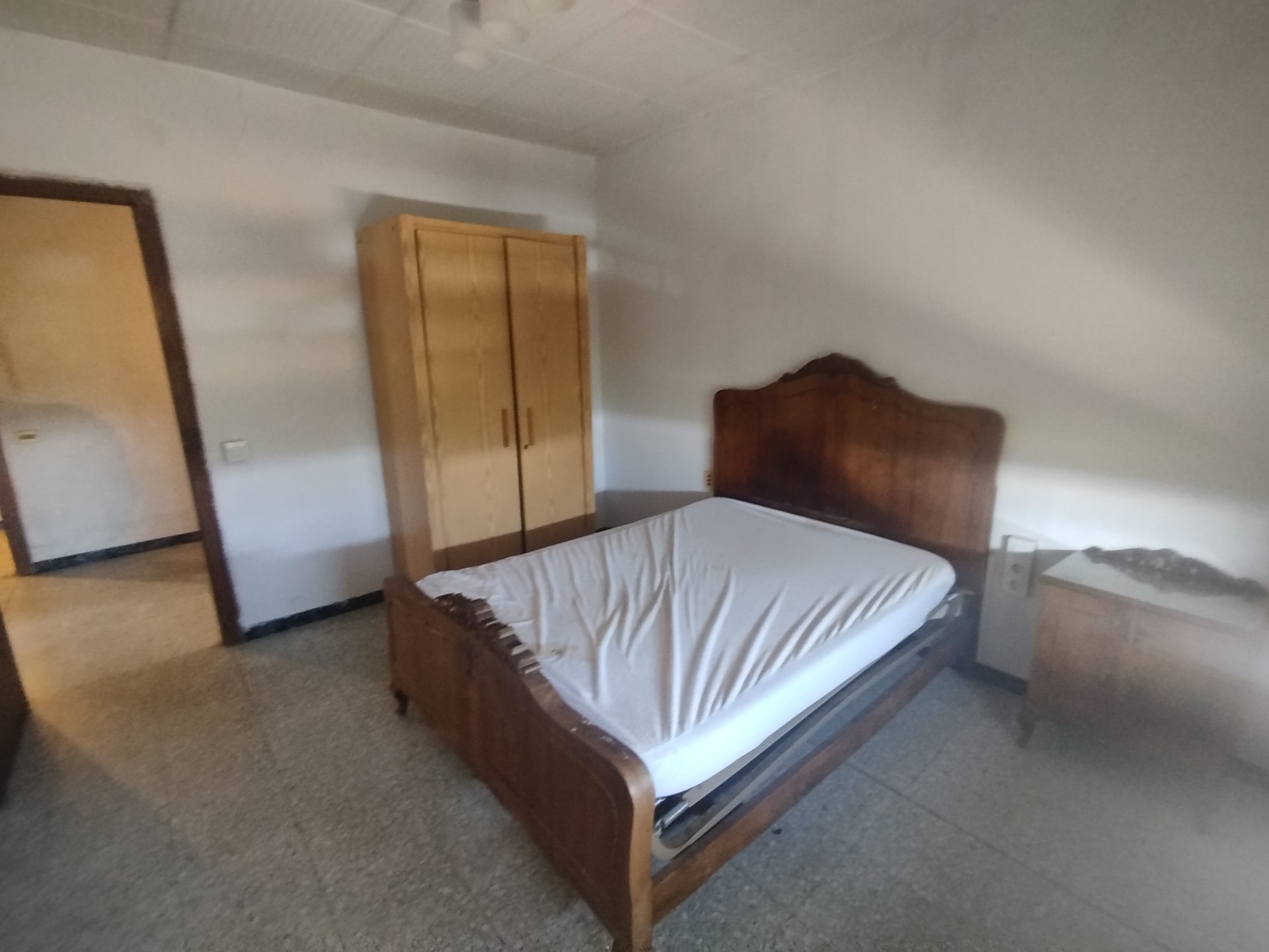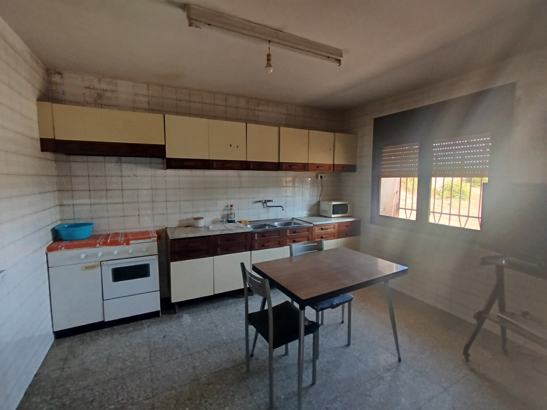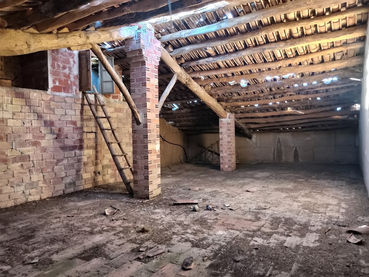 La vivienda se distribuye en dos plantas, en la planta baja está el salón comedor, una gran cocina con despensa, cuarto lavadero y comunicación con una de las naves agrícolas anexas a través de un paso donde hay tambien un pequeño alamcén. Hay un garaje independiente que se accede desde la fachada principal. En la planta superior hay 4 dormitorios con armarios empotrados y un baño completo. La nave anexa se distribuye también en dos plantas, abajo hay corraletas y en la parte superior varios espacios diáfanos de grandes dimensiones con gran parte del tejado nuevo. Hay otros dos almacenes aislados y adosados entre sí, el más grande con estructura de hormigón y el otro de madera. Existe circulación por todo el perímetro de las edificaciones.