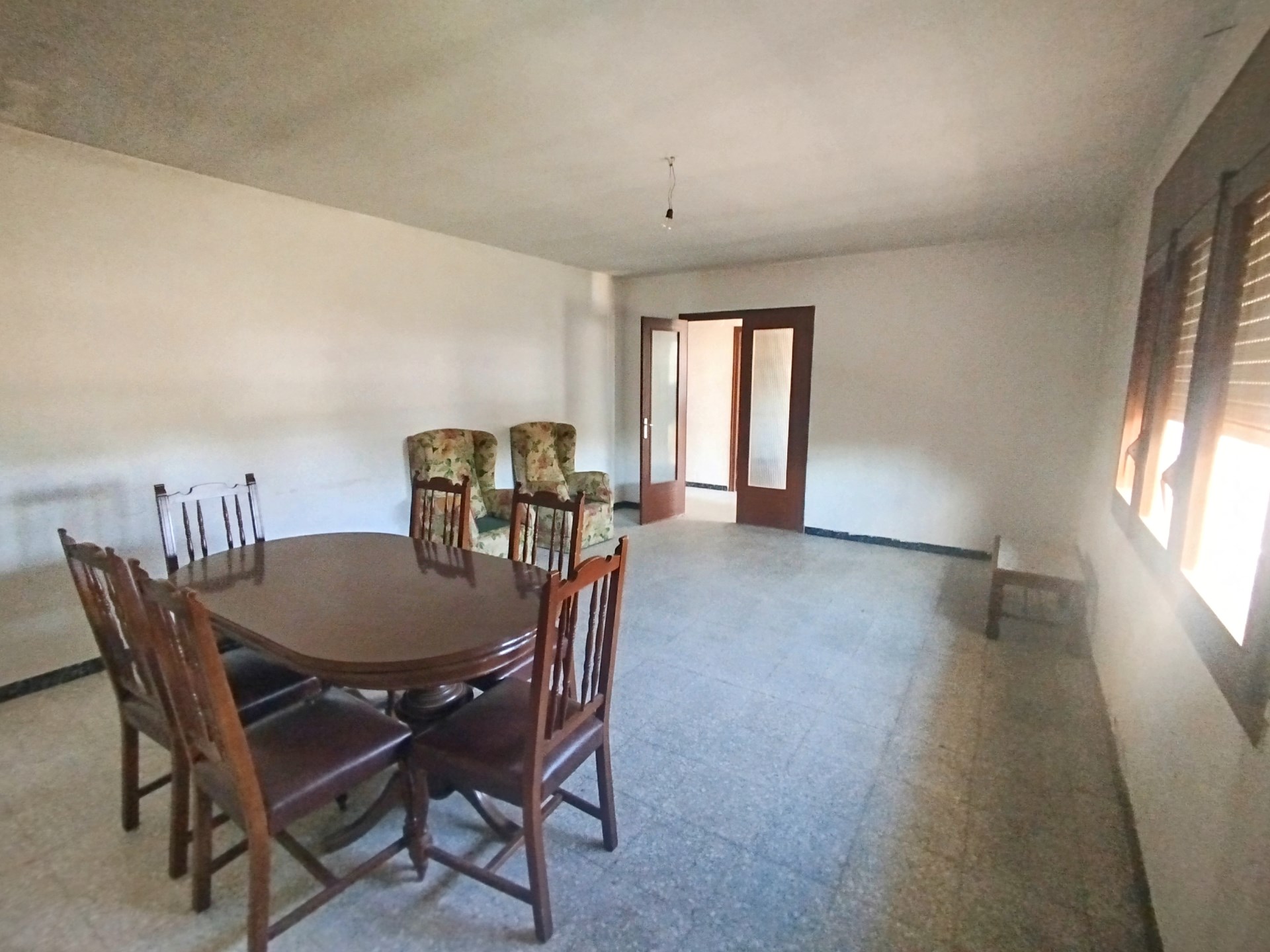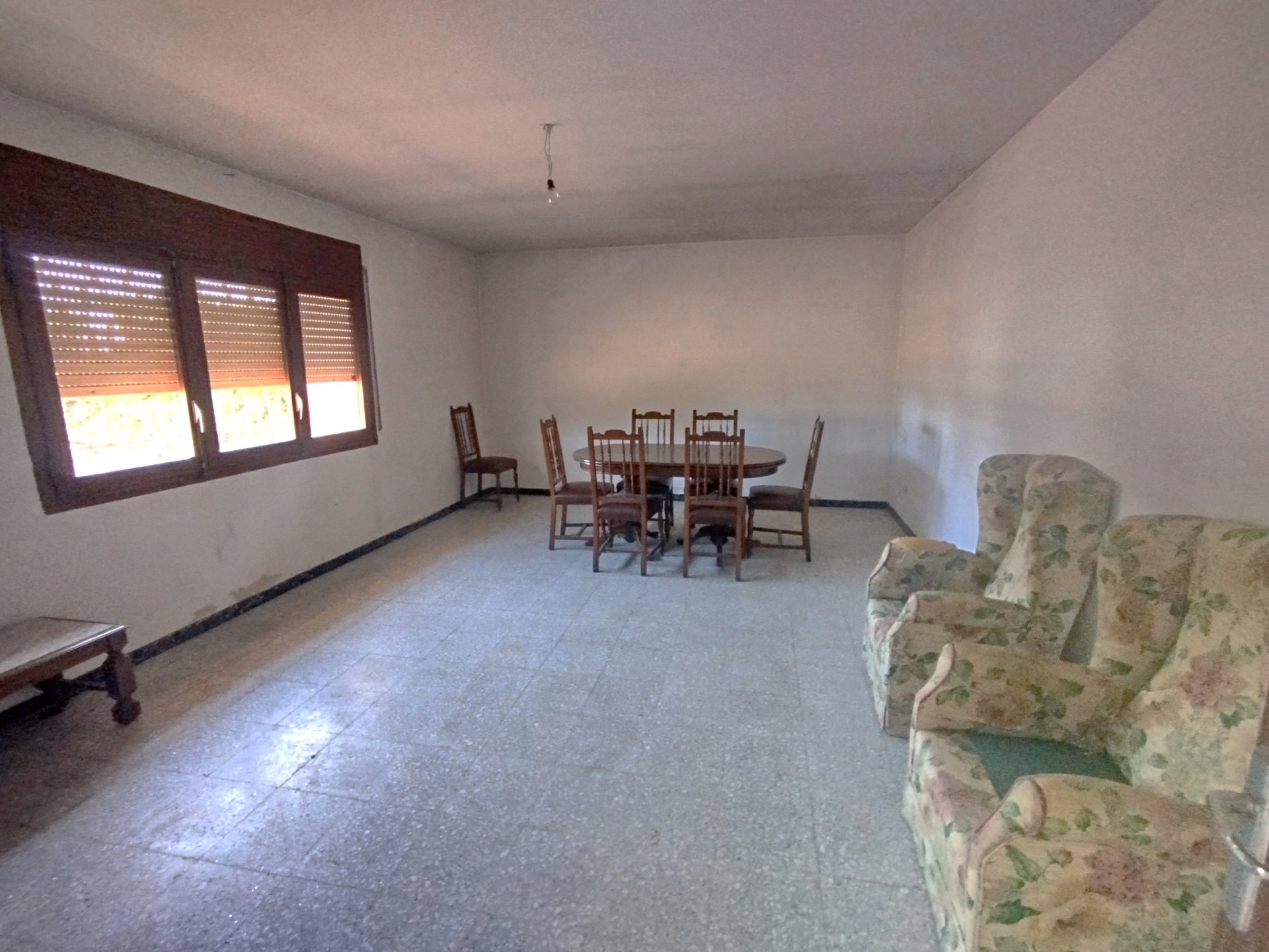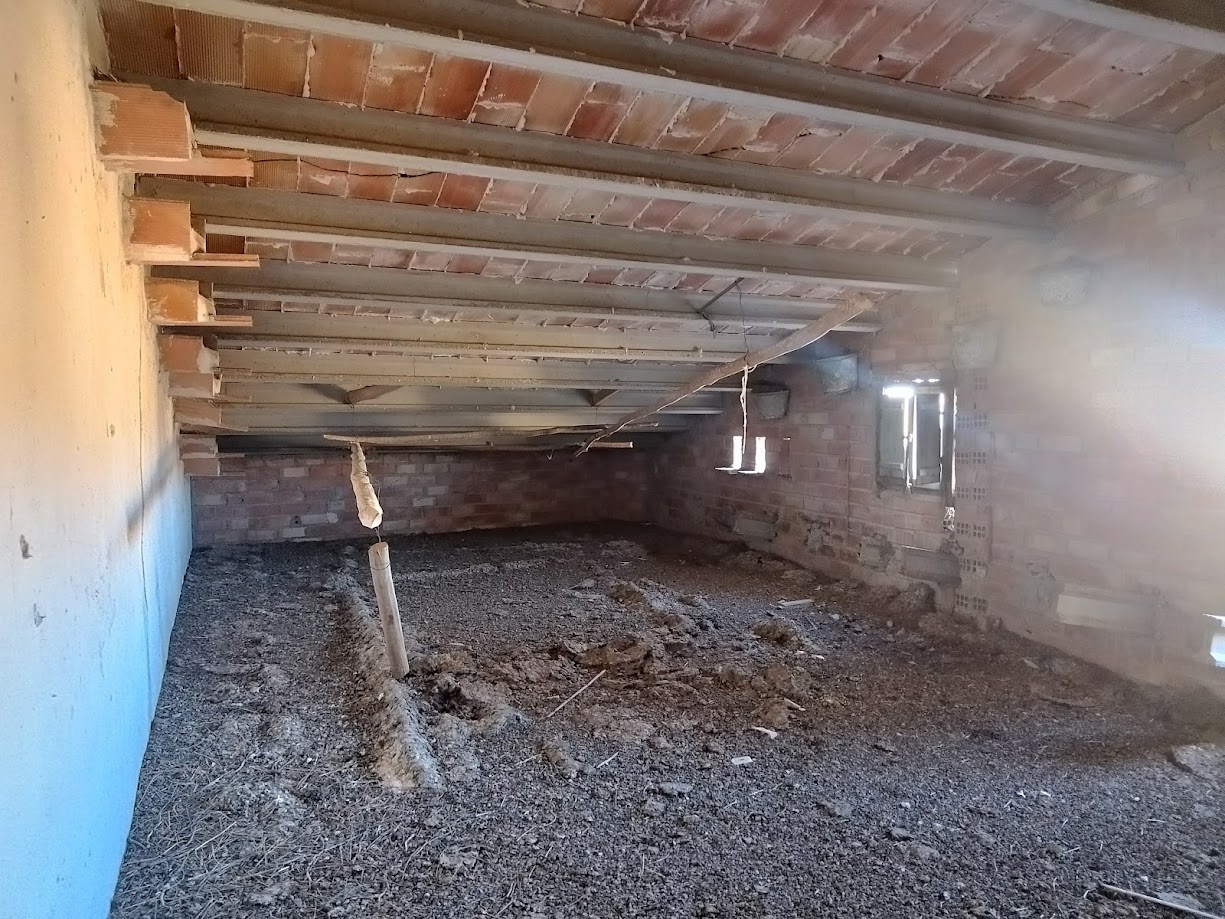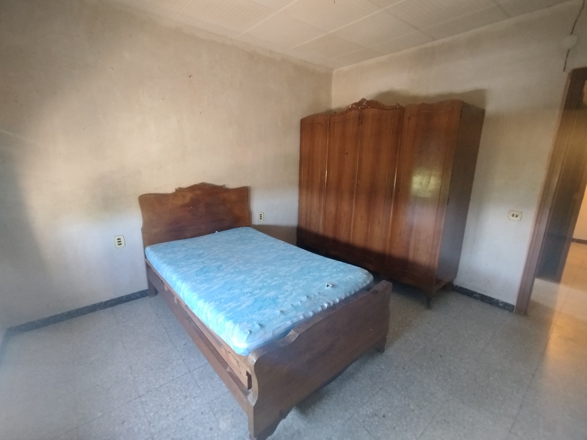 La vivienda se distribuye en dos plantas, en la planta baja está el salón comedor, una gran cocina con despensa, cuarto lavadero y comunicación con una de las naves agrícolas anexas a través de un paso donde hay tambien un pequeño alamcén. Hay un garaje independiente que se accede desde la fachada principal. En la planta superior hay 4 dormitorios con armarios empotrados y un baño completo. La nave anexa se distribuye también en dos plantas, abajo hay corraletas y en la parte superior varios espacios diáfanos de grandes dimensiones con gran parte del tejado nuevo. Hay otros dos almacenes aislados y adosados entre sí, el más grande con estructura de hormigón y el otro de madera. Existe circulación por todo el perímetro de las edificaciones.