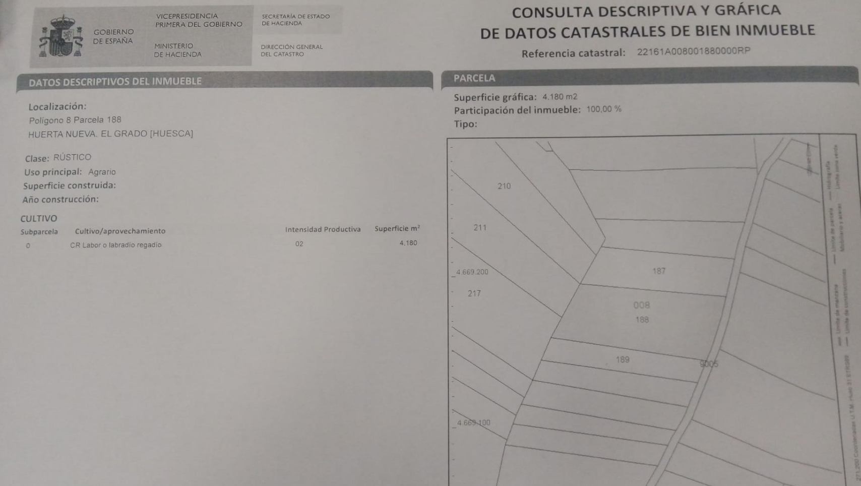VENTA TERRENO REGADIO EN EL GRADO (Huesca).