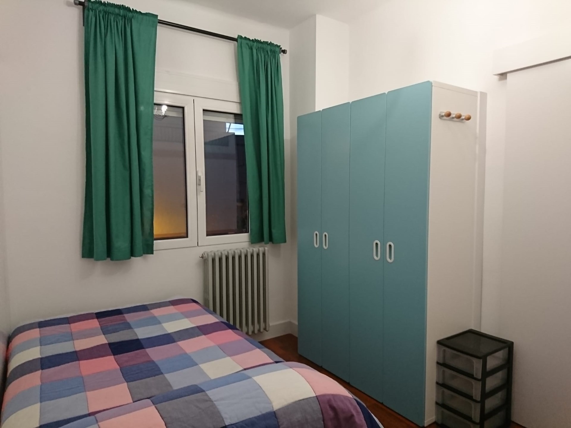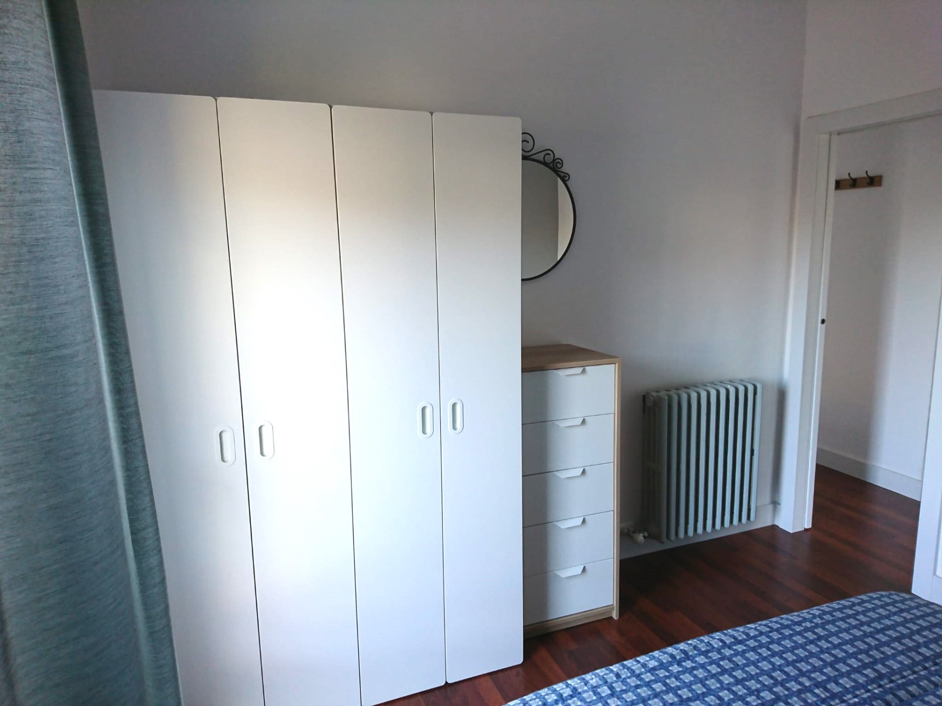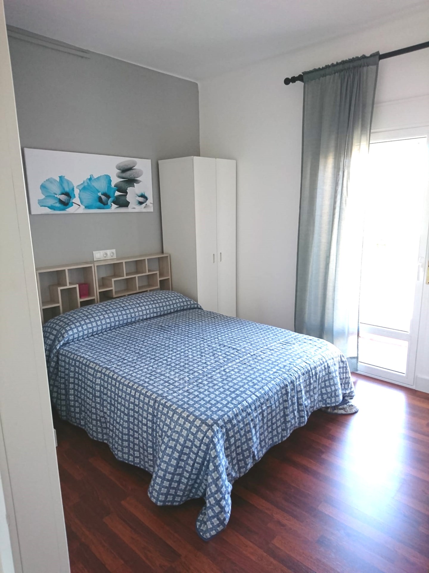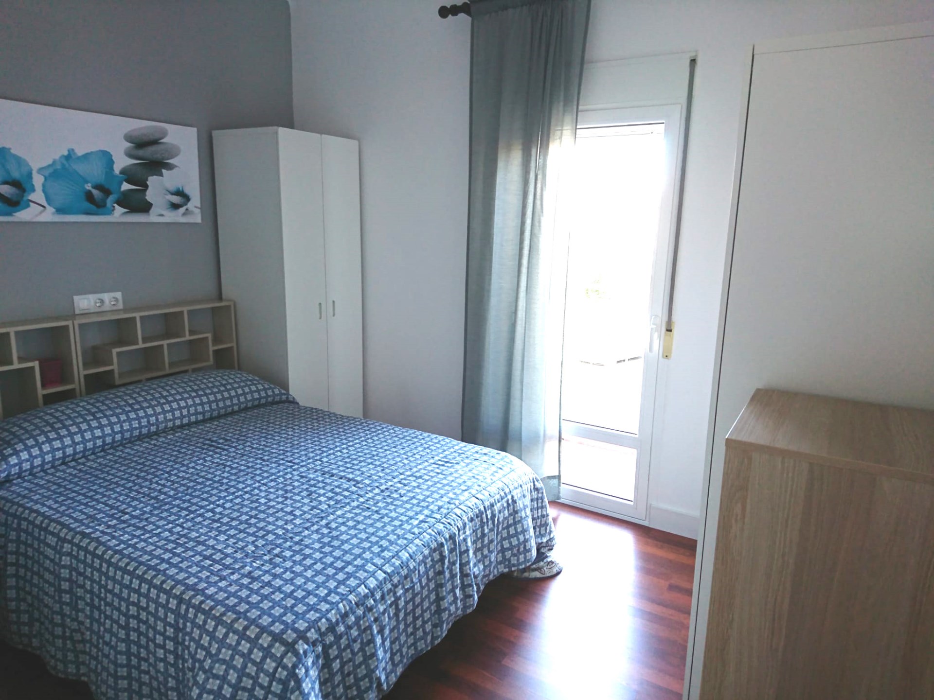 El dormitorio principal con salida a una pequeña terraza y un trastero.